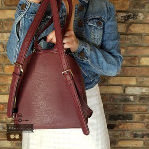 Full description = Gorgeous Pebbled Leather in Cherrywood, 9" (L) x 9.5" (H) x 5" (w)