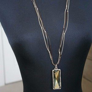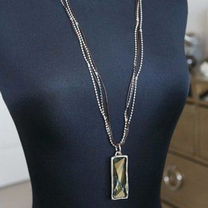 Gorgeous and unique piece by Uno de 50. A 32" multi silver plated ally and leather strand chain, with a 2" rectangular Swarovski Elements Crystal charm in the center. Fun piece to play with, can be doubled up and worn short. Handmade and designed in Spain by UNOde50 Features signature "uno de 50" engraving.
