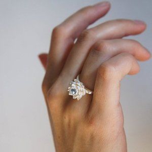 NEW 925 Silver Moonstone Lotus Flower Ring