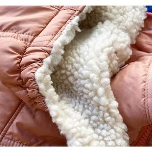 Color block and print options made of soft, windproof shell; reverses to a sherpa-pile fleece liner