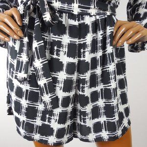 ONE CLOTHING Print Romper L Black/White Belted Lined Open Back Long Sleeves