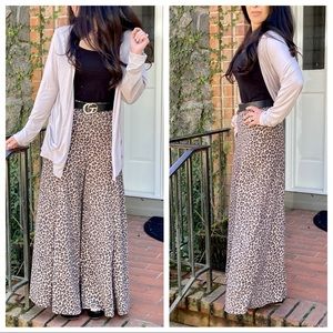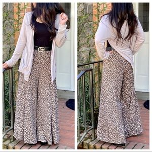 Animal print knit fabric wide leg pants