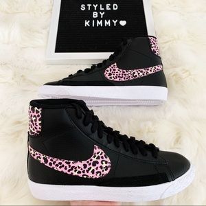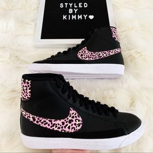NIKE Blazer Mid Shoes Sneakers Black Pink New