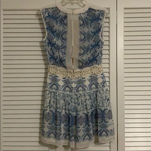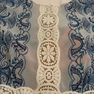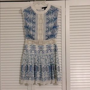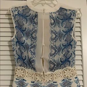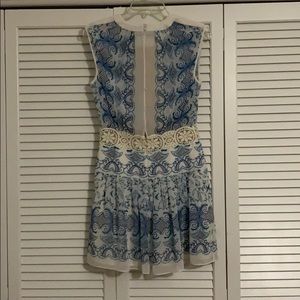 Super cute and sexy dress, perfect for spring and any dress worthy occasion. I’ve worn it twice and just had it dry cleaned, it’s in perfect condition. The knot that goes down the chest and across the waist is open and the top half of the dress is sheer, not extremely sheer, you can easily wear just a nude bra and no one will notice — see the second to last pic.