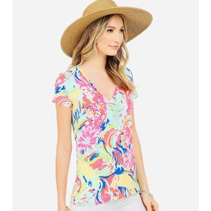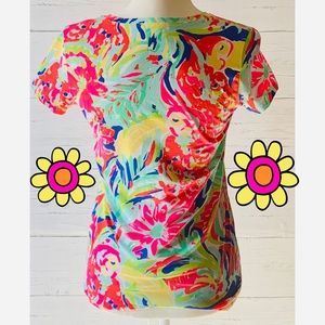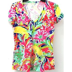 Women's Lilly Pulitzer Short Sleeve, Floral, V-Neck, Casual Shirt Size XS