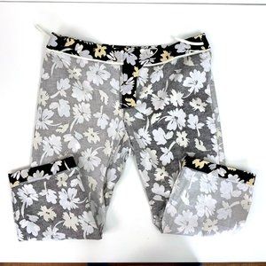 Saks Fifth Avenue Sport Cotton Capris Cropped Pants. Black/white/pale yellow/pale lavander floral pattern. Stretch cotton blend 97% cotton, 3% spandex. Machine wash cold. New w/o tag, perfect.