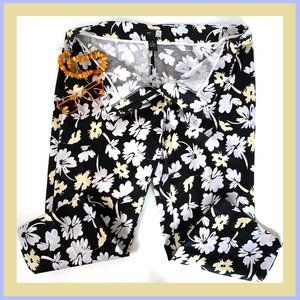 New Saks Fifth Avenue Sport Black Floral Stretch Cotton Cropped Pants Sz 14