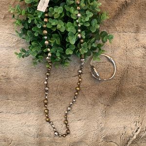 This necklace is gorgeous! I love that it has both gold and silver beads. I have shown it with a matching cuff and layered with another pendant.