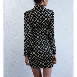 Black Gold Geo Print Sequin Bodycon Party Dress