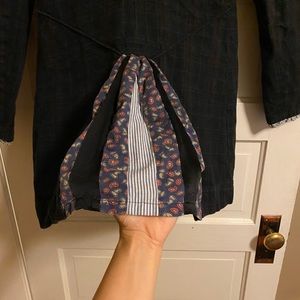 Super cool goth Free People jacket. Has some ringleader vibes with the seersucker details and secret “tail.” This js such a fun piece to wear. Please note the small rip in the left pocket.