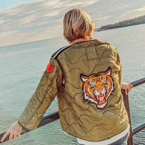 So much fun! These used jackets enable you to tell your story through patches. Let me know your interests and passions and I will pick patches to create a jacket just for you. Price is for 1 patch on each arm, one large patch for the back and one patch on the front. Jackets are in good used condition. Please feel free to ask any questions. These are originally men's jackets so sizes do run large. I am usually a medium and I wear a small. It will take a few weeks for custom.