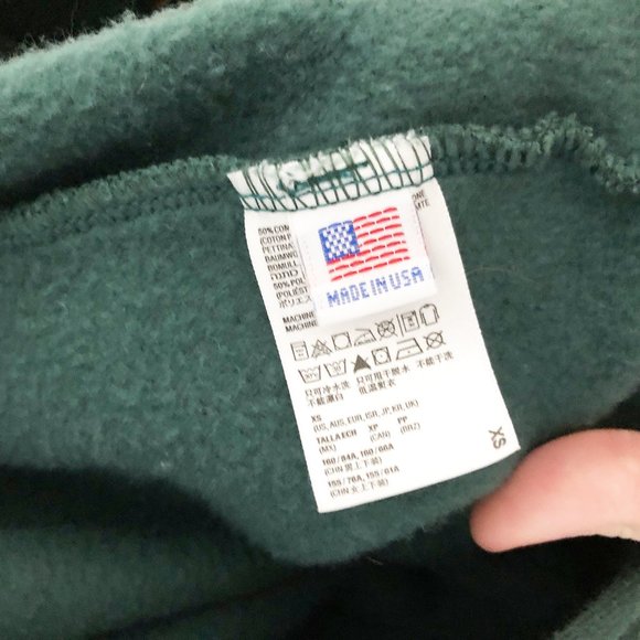 Size XS but can also fit a Small or an XXS depending on how oversized you like it. Listed under all sizes