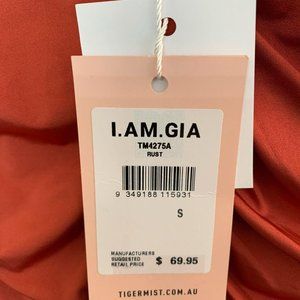Tiger Mist I Am Gia Stephanie Ruched Open-Back Dress Small in Rust