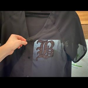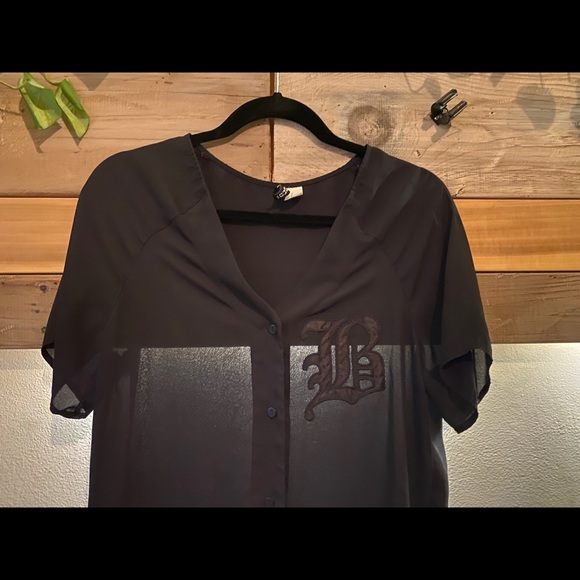 DIVIDED H&M Black Button Down Jersey Short Sleeve