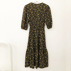 Sunning Vintage Floral Midi Dress - Poof Sleeves