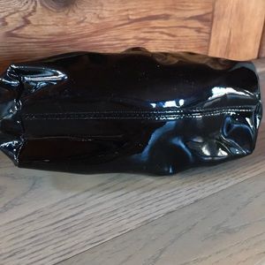 Black patent leather special occasion purse. Kenneth Cole. Used one time. There is a bend in the handle chain and two small white scuffs. Smoke free and pet free home.