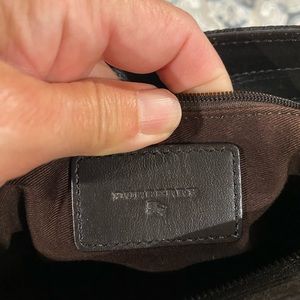 Burberry coated canvas leather handbag. This bag is gorgeous with dark brown. Color brown inside lining the bag. This bag is in great condition. Minor wear on each corners of the handbag look closely at photos to see. When zooming in you can see otherwise hard to notice when holding bag. Has Burberry engraved on the brass hardware. This doesn’t not have dust bag. This bag was rarely used.