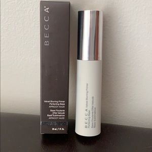 “BECCA’s Velvet Blurring Primer Perfecting Base starts as a liquid and finishes like a powder for hydrated skin that holds onto makeup for longer wear. This lightweight brightening primer smooths out the face’s texture while minimizing oil for a blurred, airbrush-like finish.”