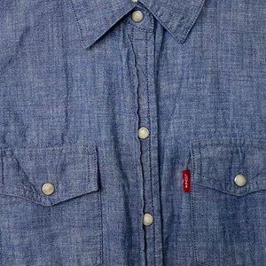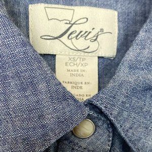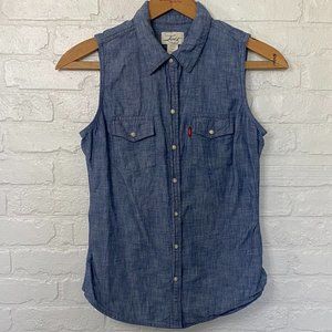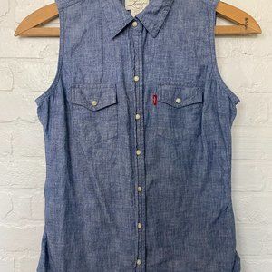 Gently used Levi’s denim western style sleeveless top with pearlescent snaps.