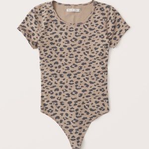 Slim-fitting bodysuit in a leopard print with crew neckline, short sleeves and two-snap bottom closure. Imported.