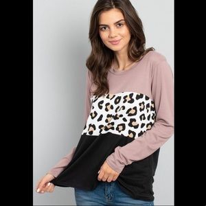 094 - Super Soft Leopard Contrast Print Long Sleeve