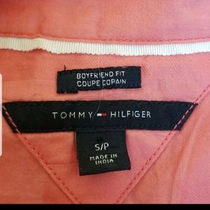 Tommy Hilfiger Boyfriend Fit Coupe Copain Shirt is all cotton. Pullover style and has roll tab sleeves. Hem is slightly longer in the back