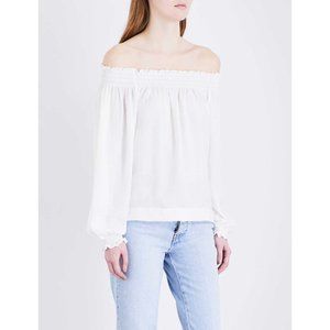 Maje Lorisa Off the Shoulder Woven Blouse Smocked