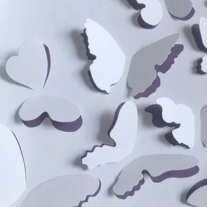 -White shadowbox with white butterflies with purple peeking underneath