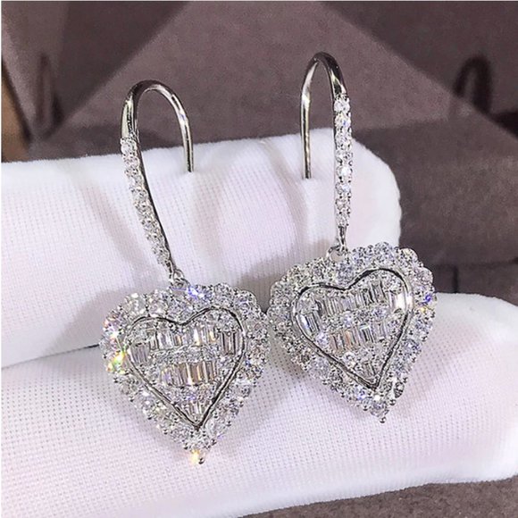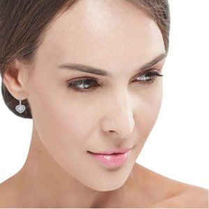 These earrings feature a halo of small, beautiful stones surrounding a heart shape cubic zirconia for a sparkling, stunning look