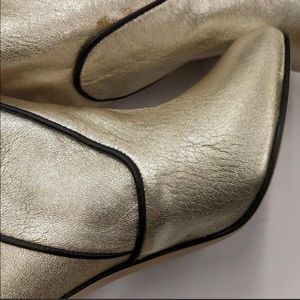 Gold Leather Ankle Boots w/Black Detail & Metallic Heel - Made in Italy