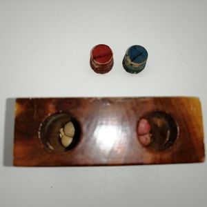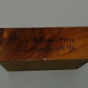 This great little vintage travel board game is just a lovely little piece where every nick or scratch adds character to the finish. The original cities and pegs are present with only one of the whites missing. On the side it is written Fort William Henry Lake George NY.