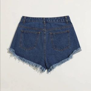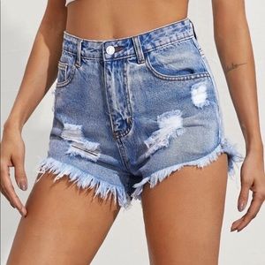 Raw hem distressed ripped denim shorts high rise high waist light wash
