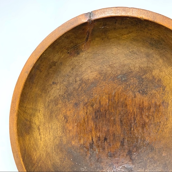 ✨Please view the pictures well as they are part of the description. Up for sale is a vintage primitive wood dough bowl. It measure approximately 16.25” one way and 17.5” the other way. It is in preowned condition with a crack, some dents, scratches and imperfections so please view all pictures to get a good idea of condition.