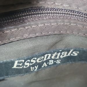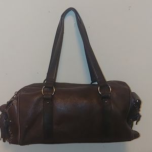 Beautiful tassle on this brown leather beaut! Silver hardware. 3 pockets on inside one zippered. Two large pockets outside on each end of bag. 16x8