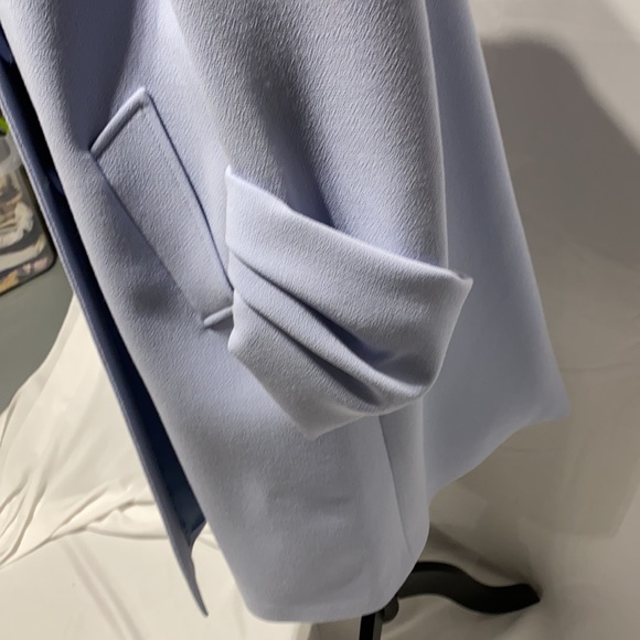 This beautiful Prada spring coat is definitely going to make a statement wherever you go . It’s a flare oversize coat , a button up front . Front pockets , stunning sleeve , can be worn with jeans and runners or your favorite dress . Shows no signs of wear and is an elegant piece for your wardrobe.