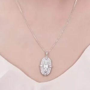 New White Gold Cubic Zircon Art Deco-Style Necklace an Earrings Set