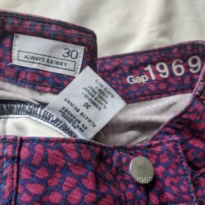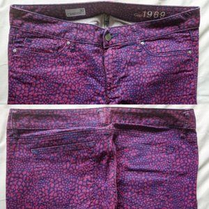 BRAND NEW without tags. Women's EU 30/US 8-10. These run large for a 30, SEE MEASUREMENTS. Pink/Blue/Purple cheetah/leopard animal print acid effect, 5 pocket style, button & zip fly. Cover & 2nd photo include stock photos from GAP for fit & color reference, the rest are my pair. Rich bright color, 98% cotton, 2% spandex, stretch for curve hugging fit, retro/vintage look.