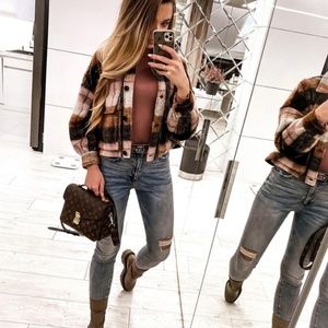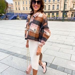 ZARA CROPPED PLAID OVERSHIRT NWT