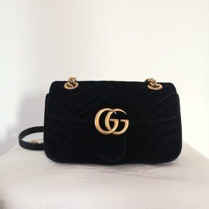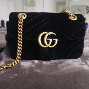 GUCCI Black Velvet Mini Marmont 2.0 Bag