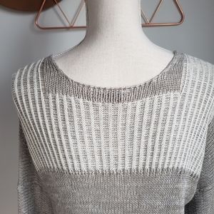 Soft Surroundings, Wrap Around Knit Linen Blend Taupe Gray 3/4 Sleeve Sweater, M
