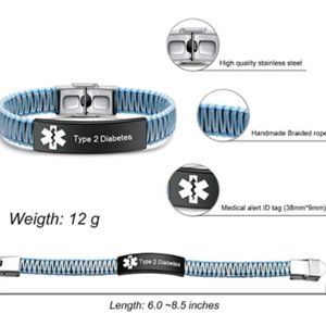 👍 HYPOALLERGENIC & INTERCHANGEABLE MEDICAL ALERT BRACELET: hypoallergenic medical alert bracelet and comes with interchangeable size options 6.0-8.5 inches (TOTAL LENGTH INCLUDED TAG)- Please measure your wrist PLUS 3/4 INCH for your bracelet size.