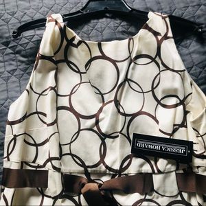 Size 22W Jessica Howard sleeveless dress Cream with brown circle print and brown ribbon belt. NWT