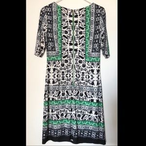 Navy and emerald floral knee-length dress. Exposed gold zipper on back. Fully lined.