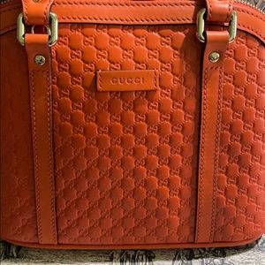 Gucci handbag. This is a mini dome handbag. This is microguccissima signature style G’s. It is a soft orange leather with handles but can convert to a satchel. NWT rare