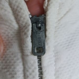 Buttons are discolored and fabric at shoulders are slightly off-white. Hard to tell in photos. I did NOT try cleaning it, but I think it would be possible to clean. Otherwise, good vintage condition!