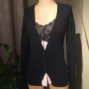 GUC Ruehl No.925 Navy Blue Cashmere Wool Blend V-Neck Cardigan Sweater Size XS