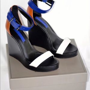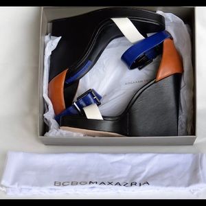 NWB BGBGMazria Ledge Color Blocked Wedge Day Sandal 8.5 M Orig $250- Heels 5” Height - Please See Picture With Measurements. BUNDLE AND SAVE EVEN MORE 💰💰! Your Shipping Label Covers Up To 5Lbs.Please refer to all pictures and feel free to ask any question - ♻️Occasionally, I do recycle clean packing shipping supplies to help keep our beautiful Planet cleaner. Smoke & Pet Free Environment.Thanks For Browsing My Closet. NEW TO POSHMARK? SIGN UP USING CODE FORWARD2U & GET $10 OFF FIRST PURCHASE.