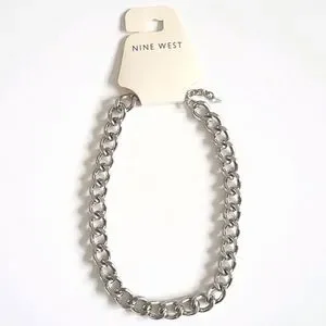 NINE WEST Chain Link Silver Color Necklace Lobster Clasp