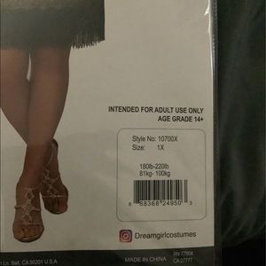 Gloves, boa, wig, jewelry and cigarette holder not included.