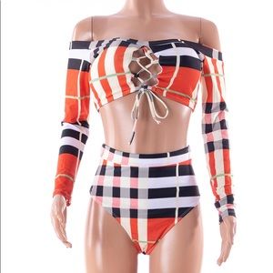 Lattice Printed 2pc Swimsuit Set